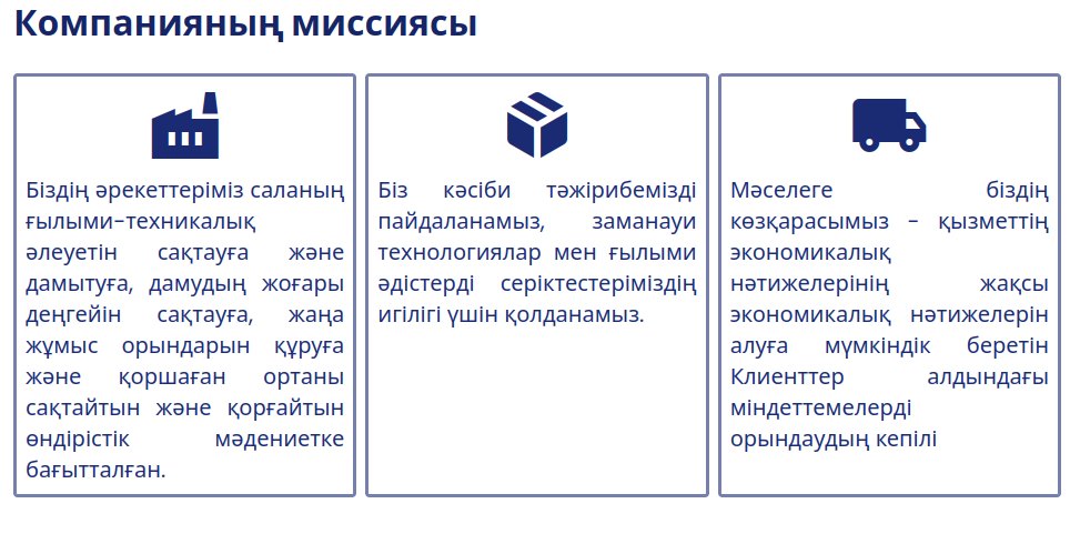 Жеңіл өндіріс принциптеріне, әр клиентке жекелей қарауға және жоғары сапалы сервистік қызмет көрсетуге сүйене отырып, "Өнеркәсіптік қауіпсіздік бойынша ғылыми-техникалық орталық" ЖШС өндірістік үдерістерді оңтайландыру мен операциялық тиімділікті арттыруда сізге көмек көрсетуге дайын. Бұл шығындарды азайтуға, тәуекелдерді басқаруды жақсартуға және өнімділікті арттыруға ықпал етеді.